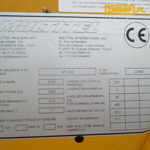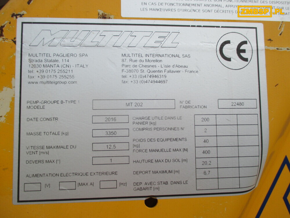 - Maksymalna wysokość robocza: 20.50 m