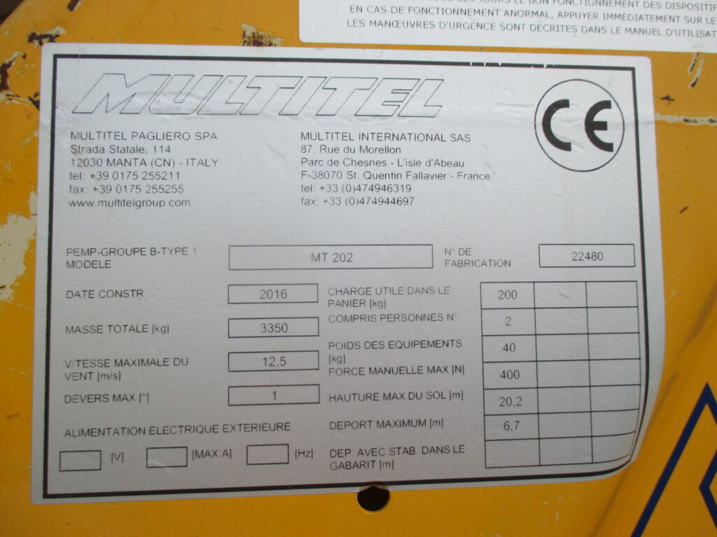 Maksymalna wysokość robocza: 20.50 m